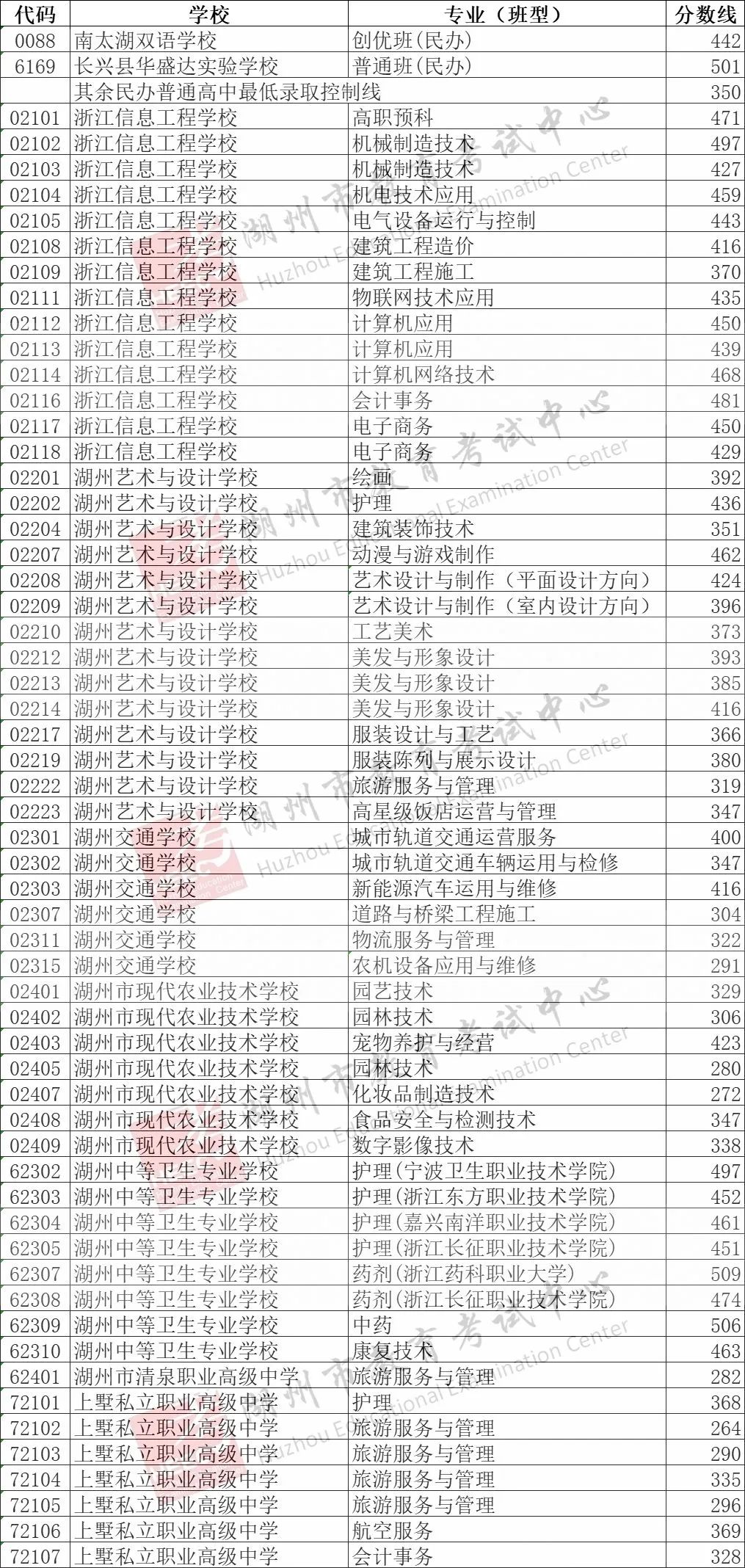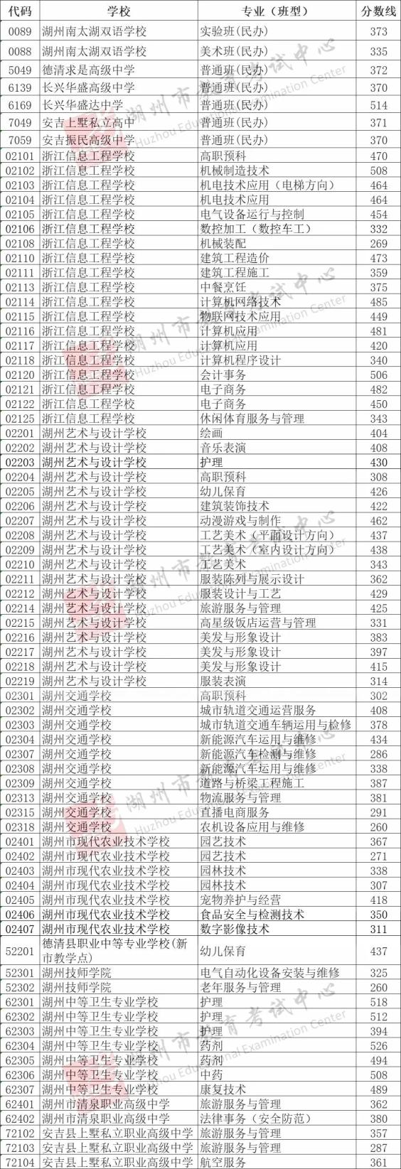 2024年湖州市区中考招生录取分数线