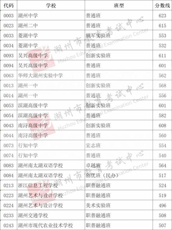 2023年湖州市区中考招生录取分数线