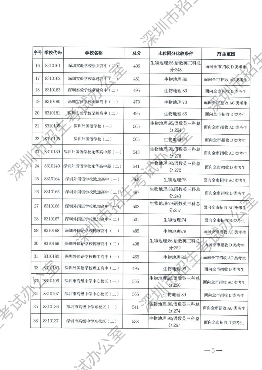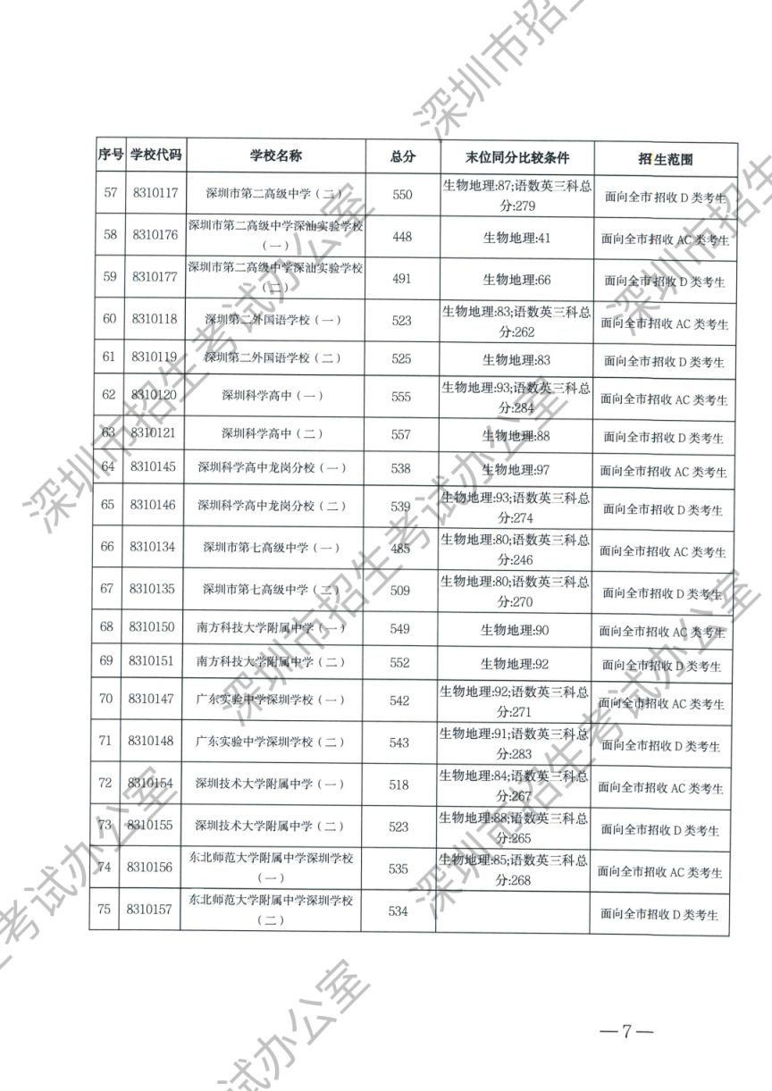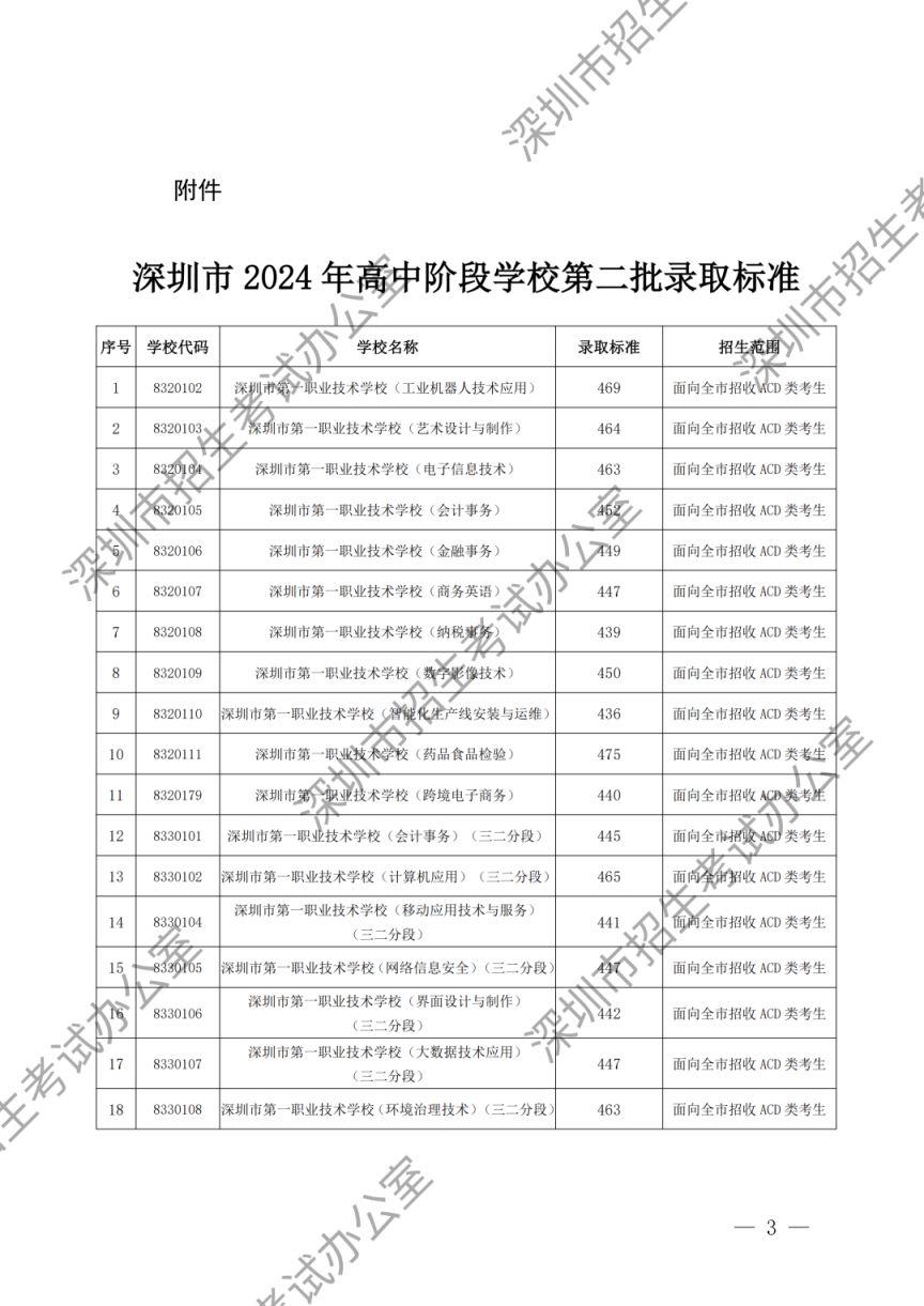 深圳市2024年高中阶段学校第一批、第二批录取标准