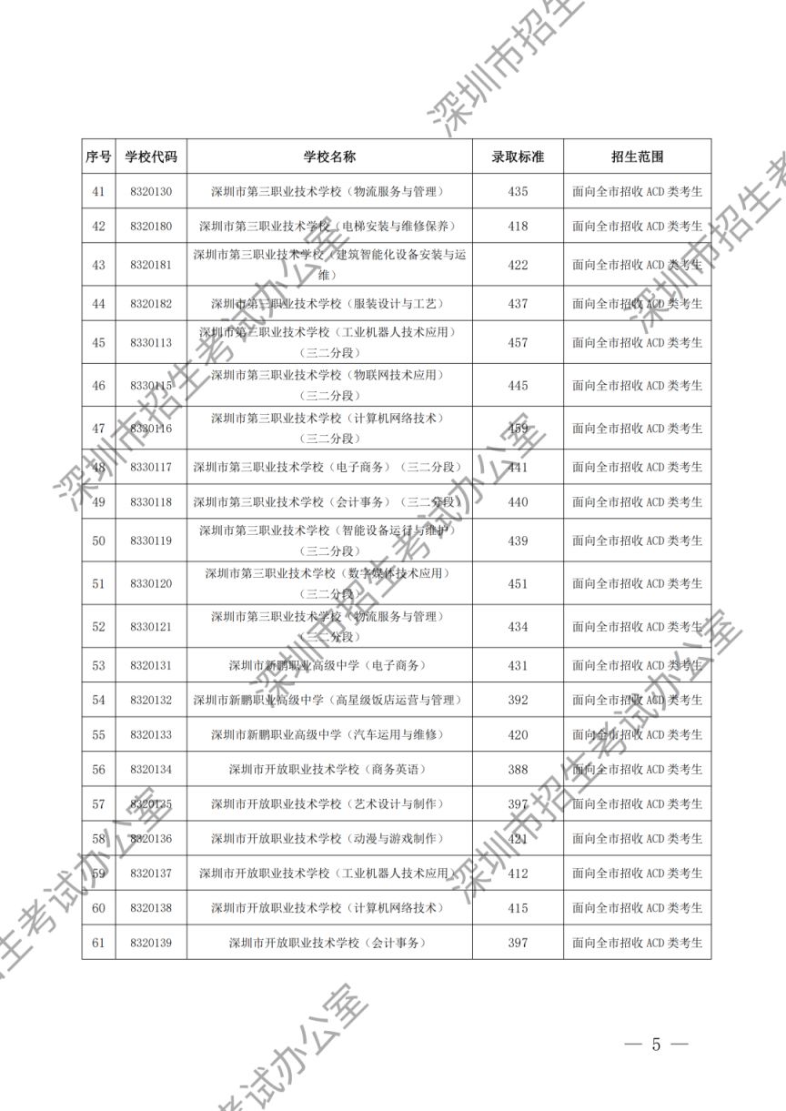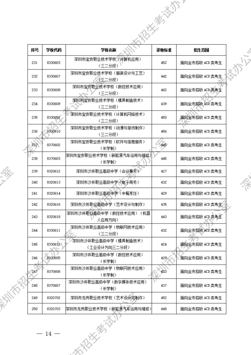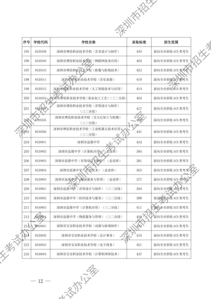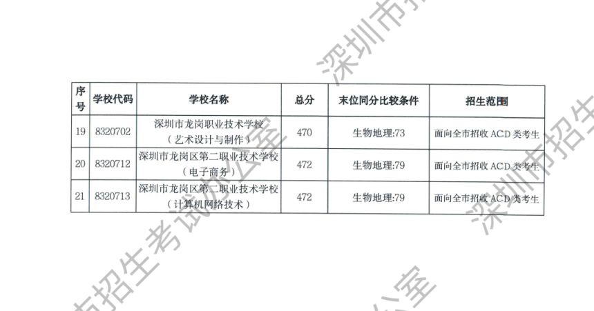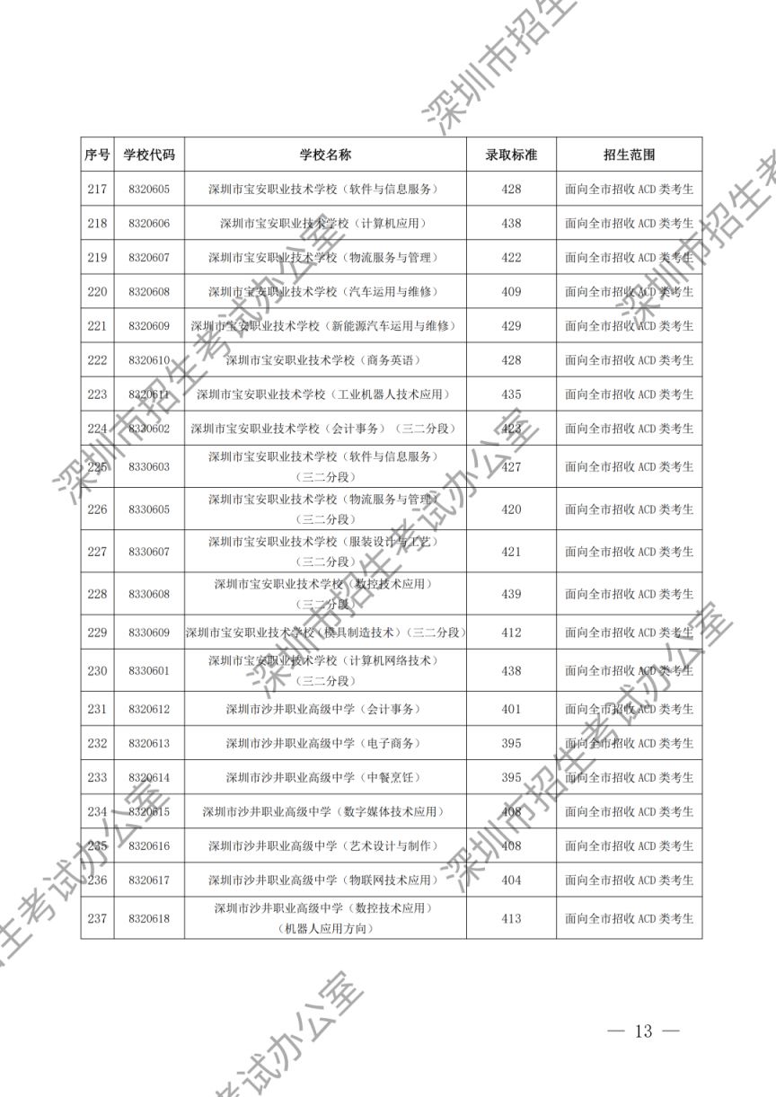 深圳市2023年高中阶段学校第一批、第二批录取标准