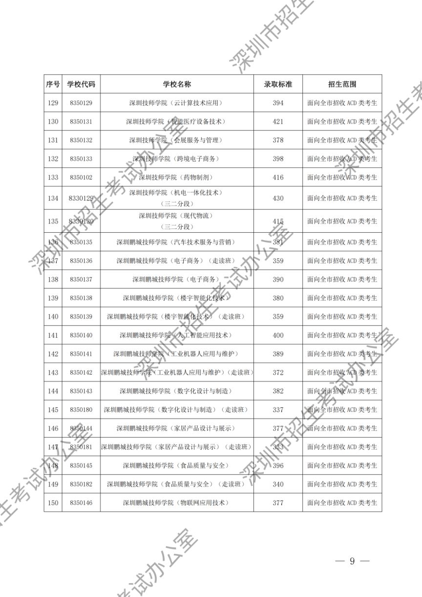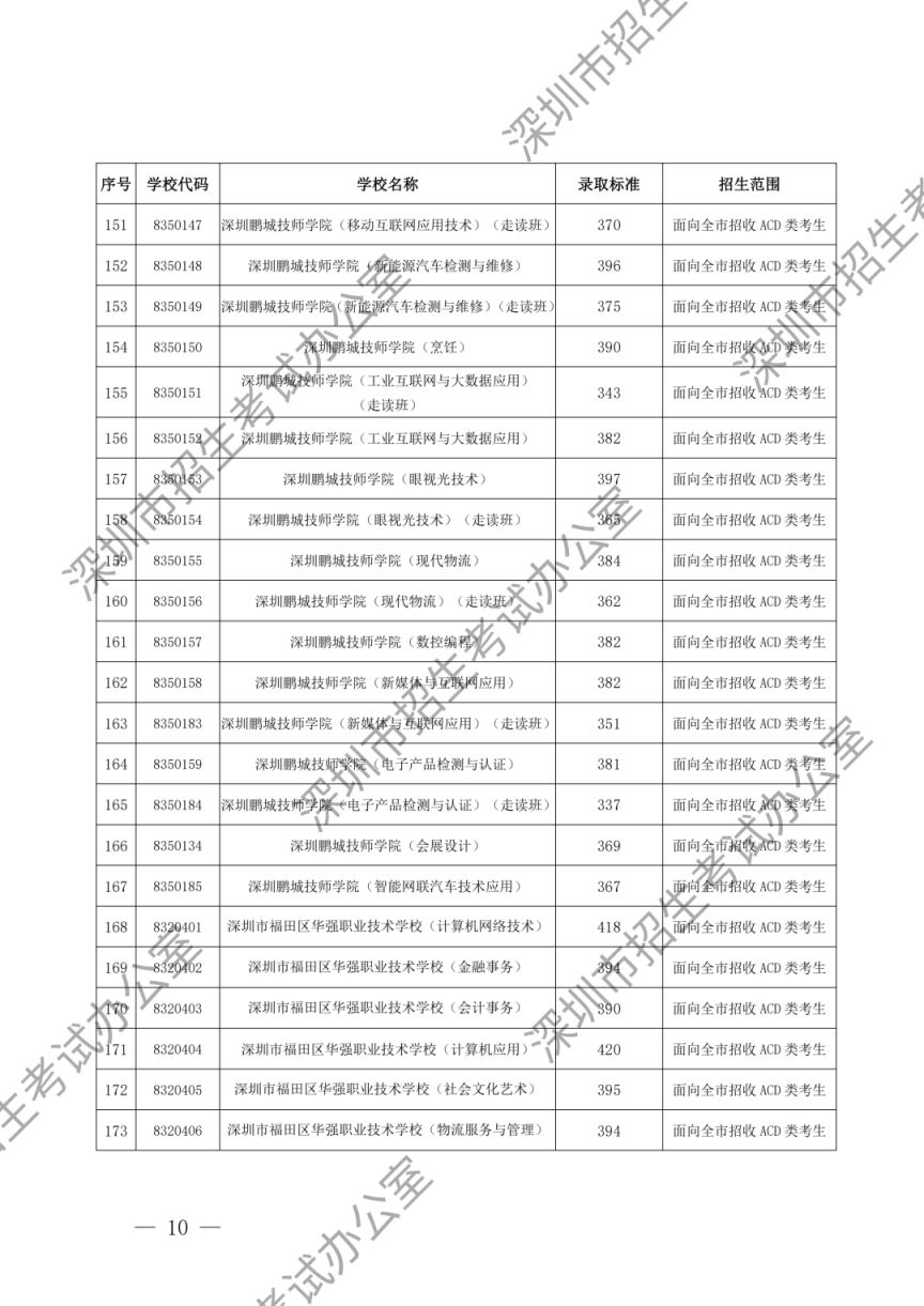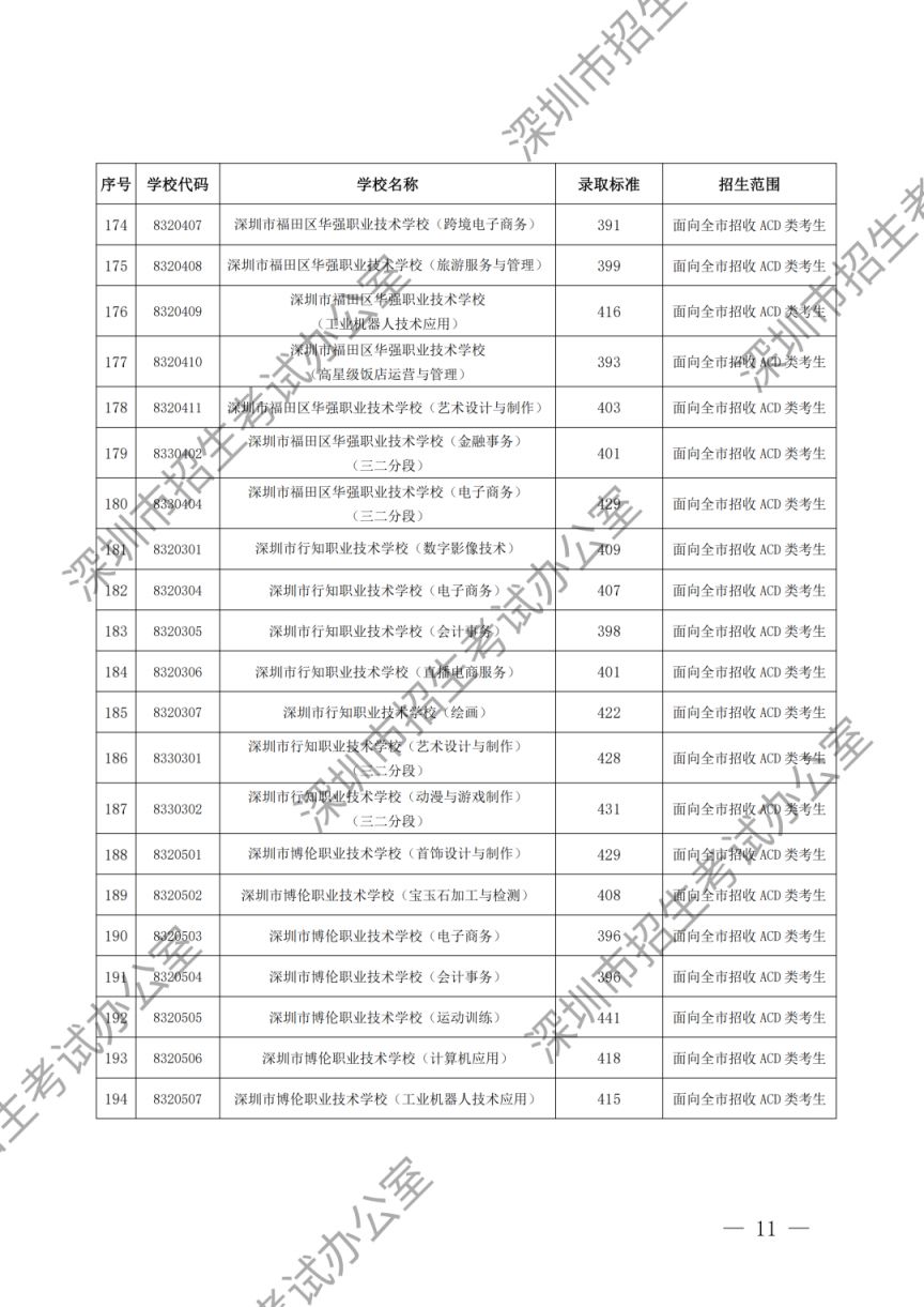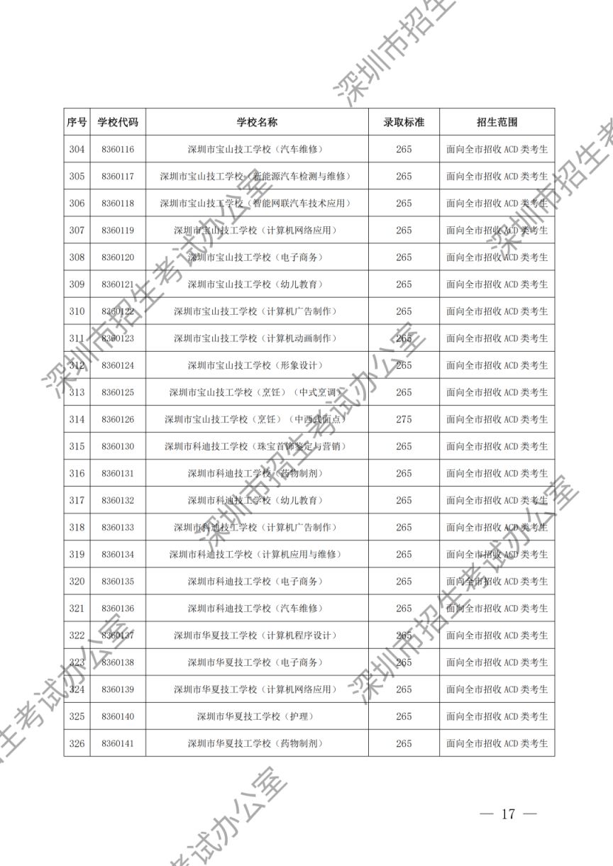 深圳市2023年高中阶段学校第一批、第二批录取标准