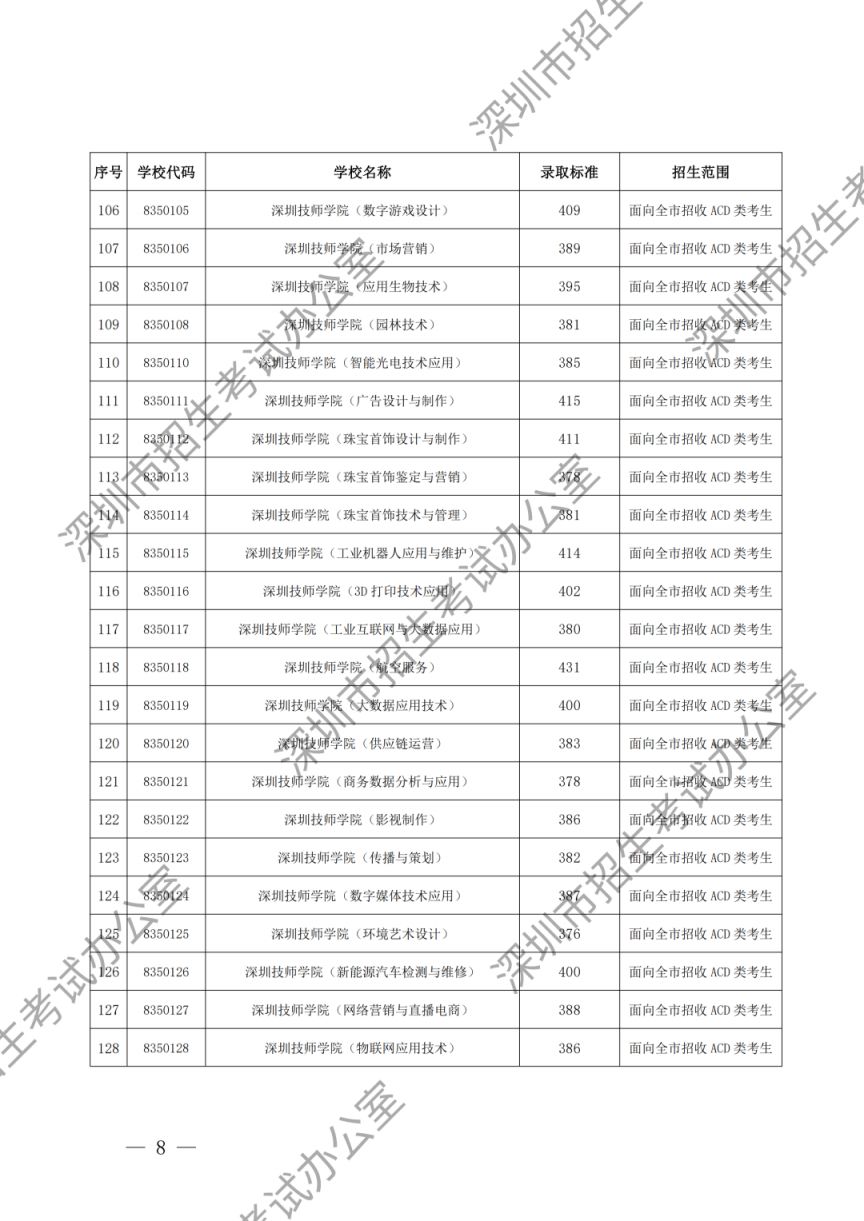 深圳市2025年高中阶段学校第一批、第二批录取标准